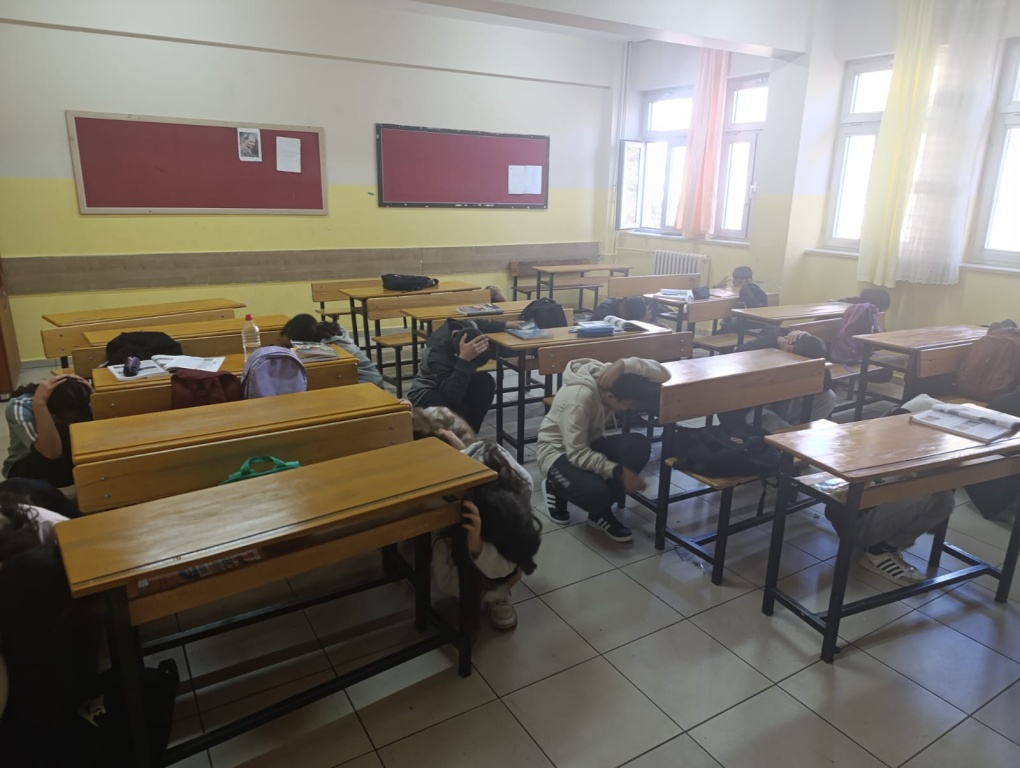 Tatbikat öncesinde, öğrencilerimize deprem sırasında can ve mal kaybını en aza indirmek için hayati önem taşıyan "Çök-Kapan-Tutun" hareketi başta olmak üzere, güvenli tahliye yolları ve toplanma alanları hakkında detaylı bilgilendirme yapıldı.